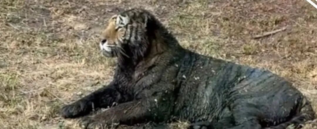 东北虎“二埋汰”一身黑泥,园方:猫科动物普遍爱干净,但它就是比较埋汰