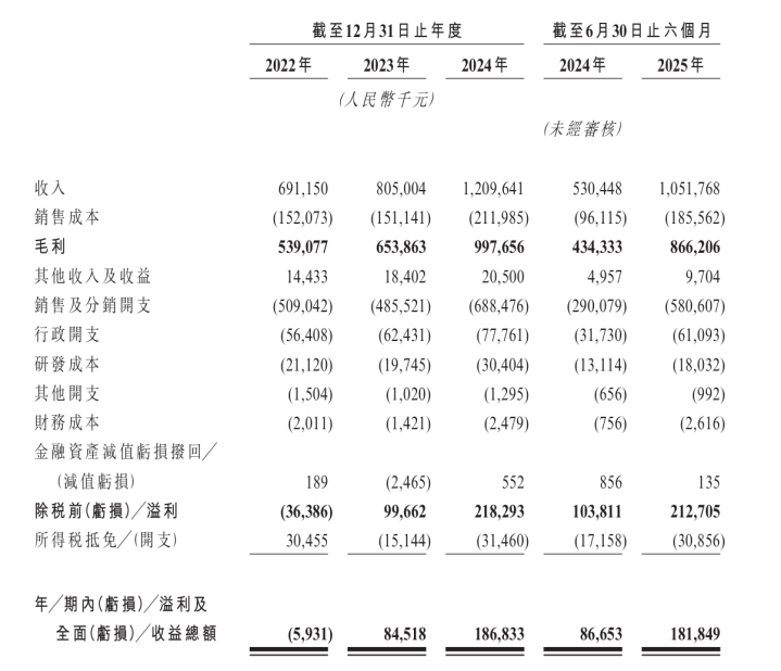 招股书显示,2022年至2024年,公司营收从6.91亿元跃升至12.1亿元,年复合增长率达32%;净利润从2022年的亏损593万元,扭亏为盈至2024年的1.87亿元。2025年上半年,其营收同比增长至10.52亿元,净利润达1.82亿元。